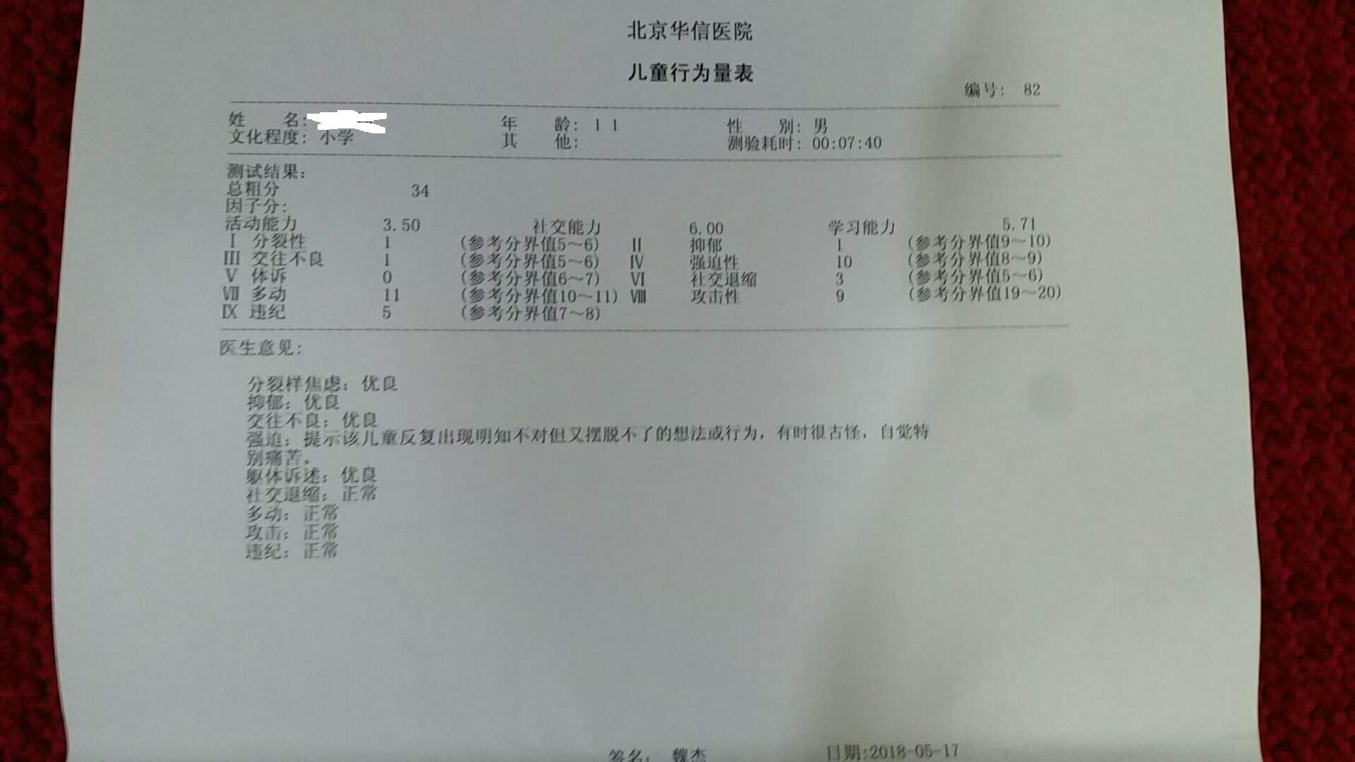 服用营养补剂100多天了,总结一下。目前是DMAE250mg,PS100mg晚上临睡前吃,镁250mg,锌25mg下午放学回家吃。这100多天的改变比1-4年级的总的改变还多,以前指出他缺点,批评也好发火也好全然无效。现在自己知道哪里不对,并有一定愧疚感。知道自己行为前后的因果关系。以前作业搞到11,12点做不完是常事,现在基本9点就能搞完。昨天还在抱怨自己说作业写到9点太慢了,这是整个小学第一次发生的事。这100多天里前1个月最难,效果不明显。第二个月有些效果但反复。第三个月开始比较稳定,自觉性加强了许多。行为应该算正常学生中等偏下的水平,基本不能说有异常,老师对他行为也有夸奖。希望这个效果能持续下去,adhd小孩真正挑战应该是初中开始,小学阶段是个难得的矫正时间窗口。