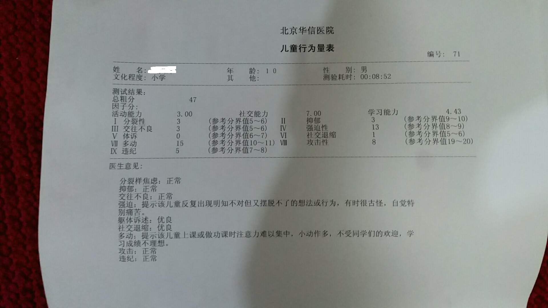 今天拿验血报告,镁钙铁锌四样,除了钙其他都偏低。微量元素完全偏低,有理由断定激素和各种氨基酸也偏低。怀疑多动症就是整个大脑激素和微量元素,氨基酸完全失衡,人反正不傻就是怪异的很。