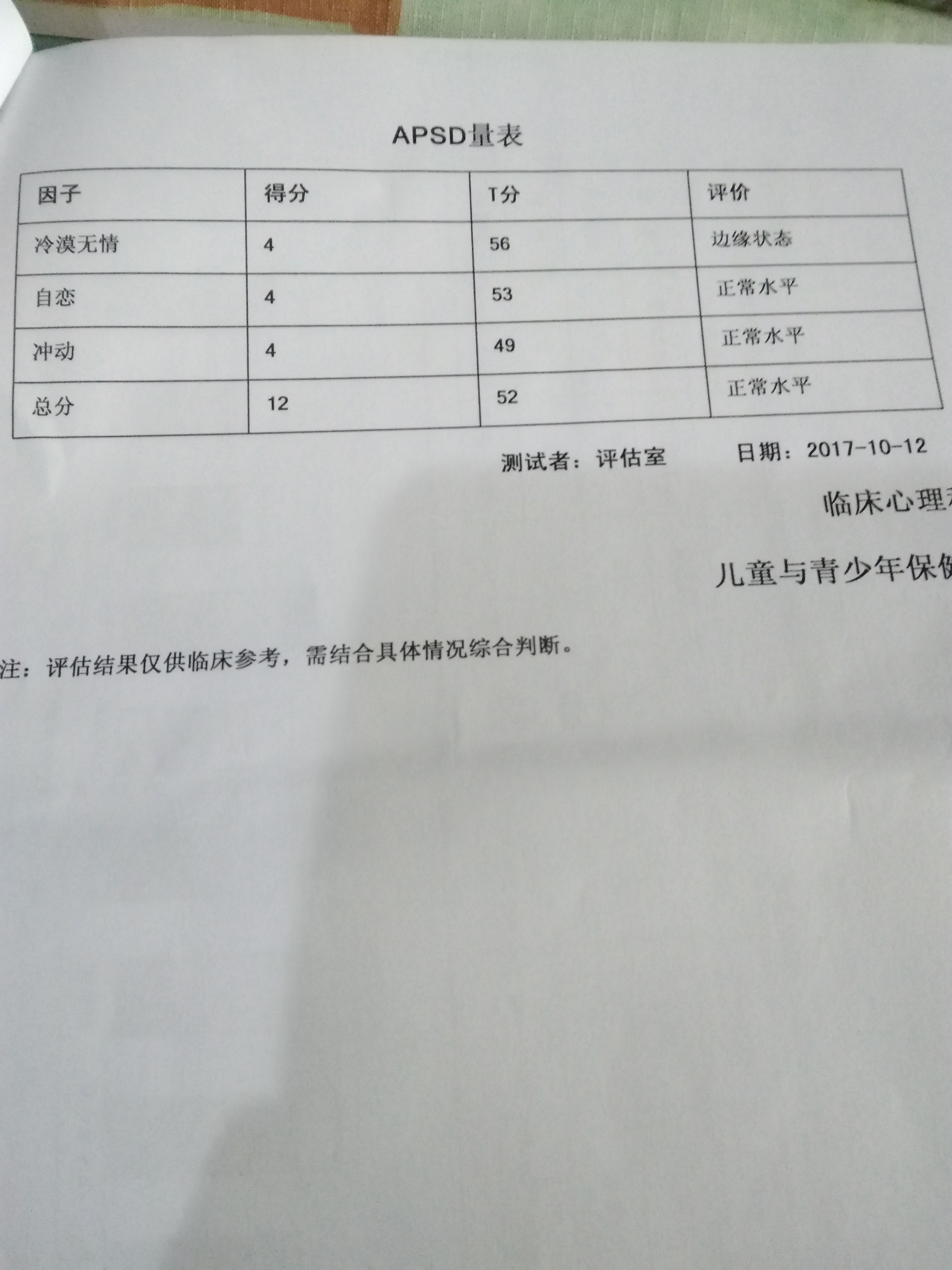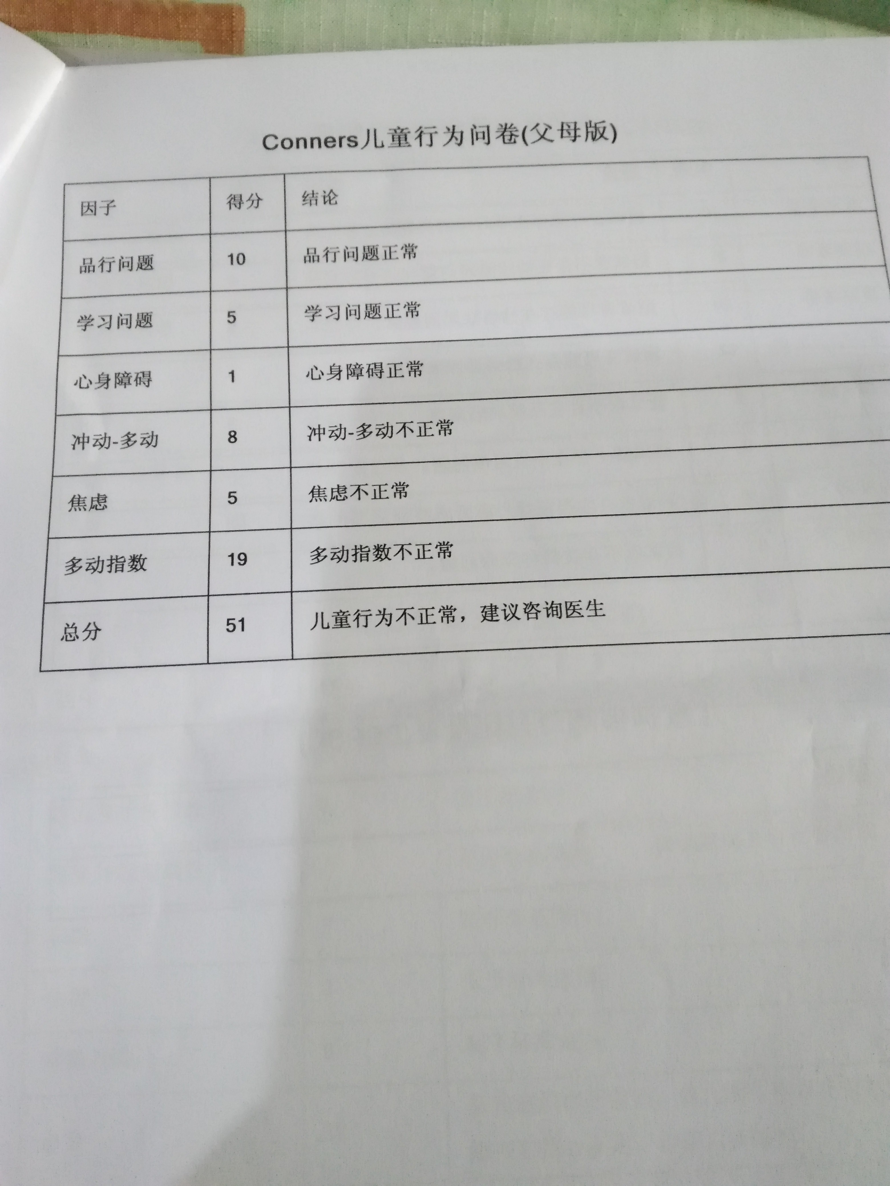 conners(父母) 多动因子也显示不正常。