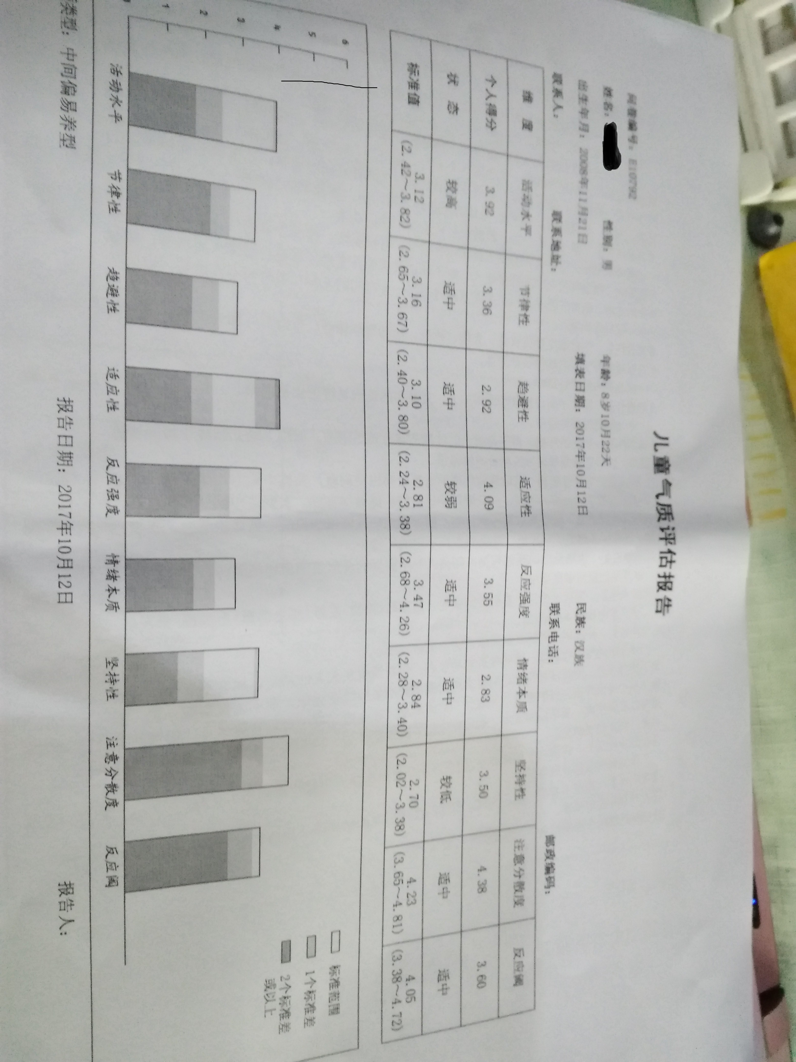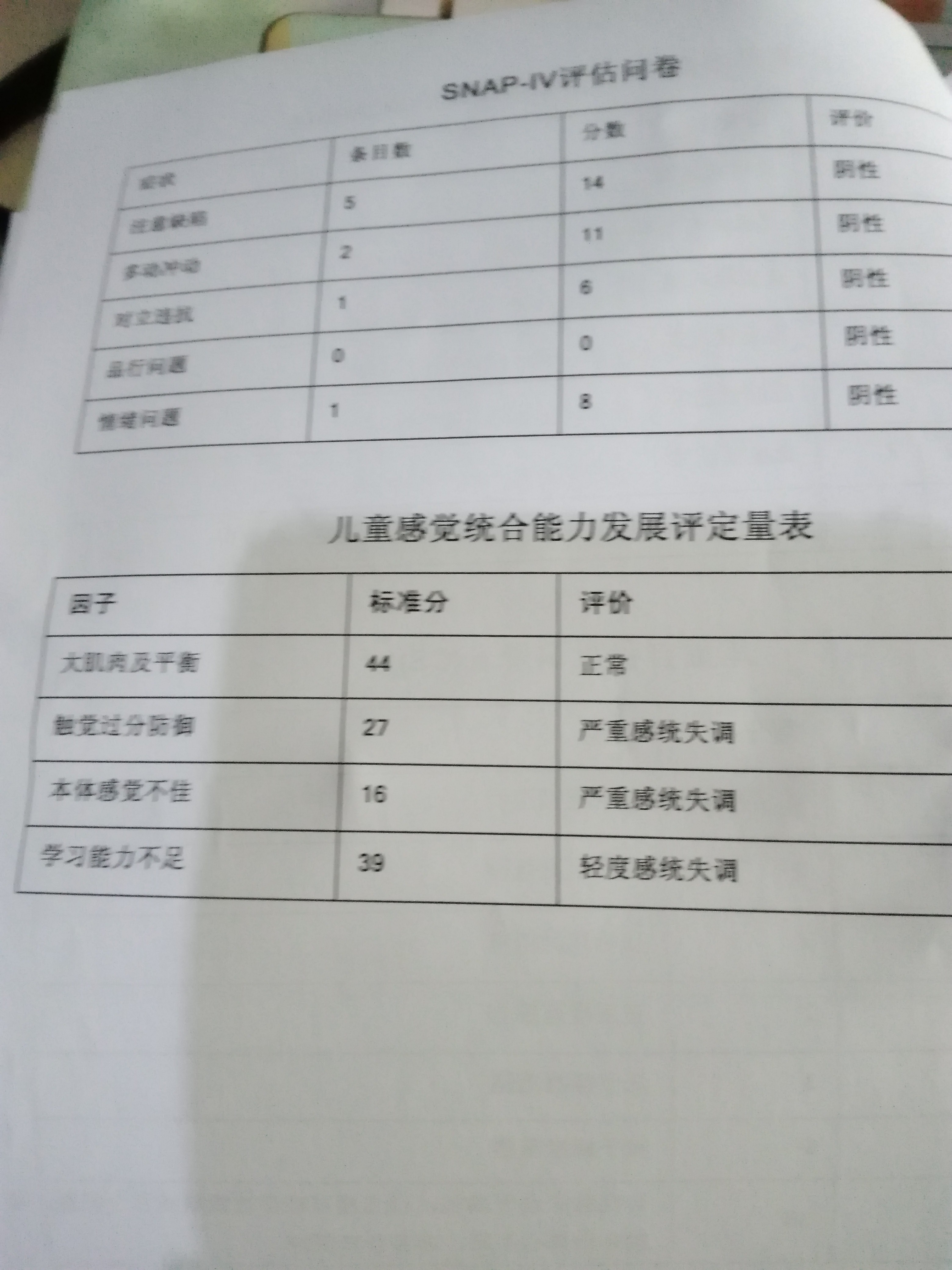 1、儿童最明显感觉统合能力差,这个表现为笨拙,要通过训练可以提高,比如掂乒乓球(精细运动训练) 2、儿童表现比较突出的焦虑。这个要问问焦虑产生的原因,从量表上看有分离型焦虑表现明显,这个需要家长回顾一下产生的原因。 3、和ADHD相关的测试没有,通过目前的测试可以隐约看到一些问题,但是不能通过测试确定。但是韦氏里的四个能力表现非常差,如果孩子是认真配合完成的,那就说明这几个地方问题比较严重,韦氏低于10分,最低要低于4分相当于5岁的能力状态。这一定会影响目前三年级的学业。 4、张教授是全国专家,需要咨询一下她。挂特需意义不大,测试结果比较明显,需要按照医生的方法进行。 这里的孩子都差不多,加油吧!